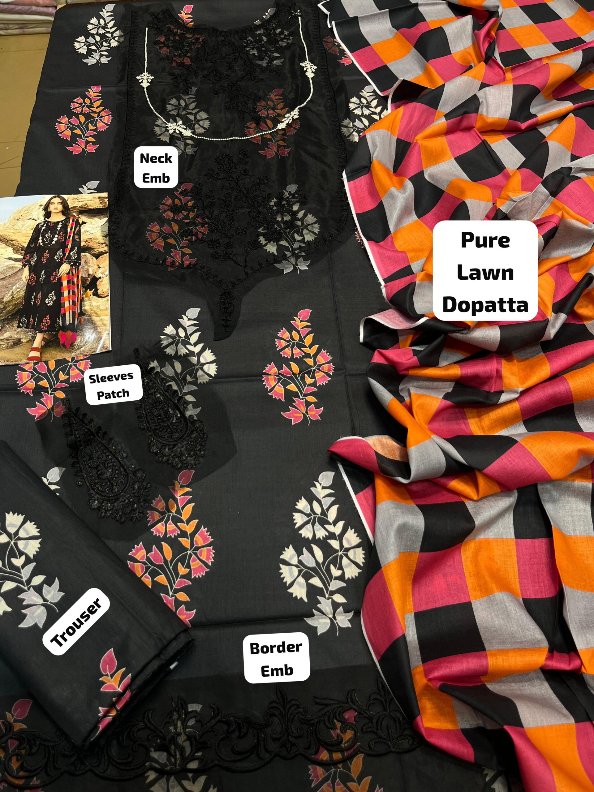 The ensemble is completed with a fully printed lawn dupatta featuring four-sided design, giving it a graceful and premium finish. With brand stamping on both shirt and dupatta and carefully designed packaging, this suit reflects authenticity and quality.