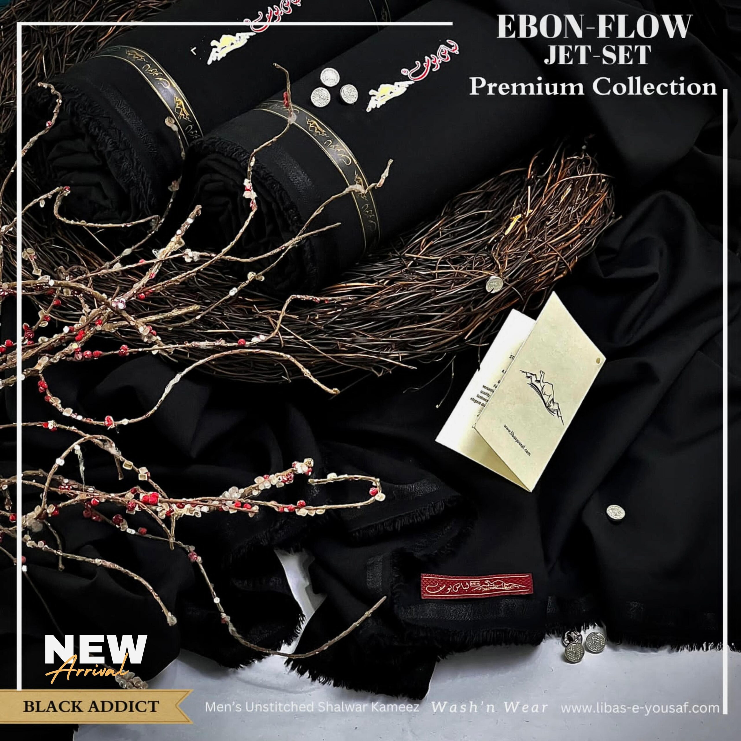 The Ebonflow Jet-Set Suit by Libas-E-Yousaf® defines modern elegance with its rich JET-BLACK tone and exceptional wash-n-wear fabric. Perfectly structured for men who value class, style, and practicality, this premium unstitched 4-meter suit offers a smooth fall, wrinkle-resistant texture, and all-season comfort.