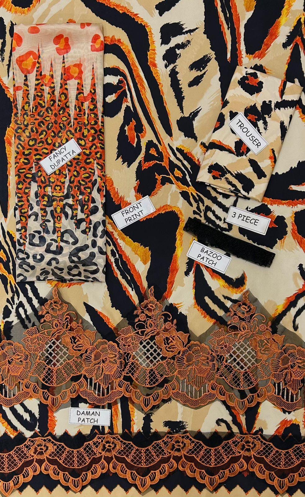 Step into timeless elegance with Moosa Fabrics Premium 3PC Silk Unstitched Suit, designed for the modern woman who values sophistication and style. Made from Shamoze Silk, this suit features digital print on front, back, and sleeves, paired with a matching silk digital print dupatta and silk trouser.